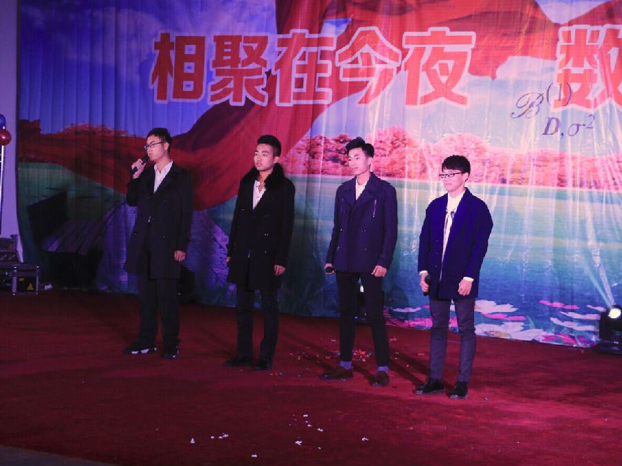 “相聚在今夜,数学更辉煌”迎新晚会是由数统院本科生,研究生和老师们精心筹备的19个节目参演,中间插入了游戏环节和捐款环节。晚会在校文联的开场舞《鼓舞东油》中徐徐拉开帷幕。以幽默诙谐的语句,热闹喧天的锣鼓奏响的《数学赞》,道出了学生们对数统院这个大家庭的心声;轻快灵动的歌声,饱含深情的歌唱,《北京东路的日子》更是流露了同学们对校园生活的眷恋,展现了青春的欢乐与美好;陈思璐老师演奏的《丝路驼铃》,悠扬动听,如甘泉般滋润了每个人的心田。
