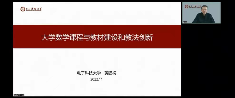 黄廷祝教授以“大学数学课程与教材建设和教法创新”为题,从适应一流人才培养,大学数学教学改革创新、教材改革创新和配套教学资源建设、关于教法以及课堂教学、关于数学类专业新型研究性课程建设等四个方面展开。黄廷祝教授在报告中解释了大学数学教学极其重要的原因,强调在教学过程中教师对知识的讲解要深入浅出,同时要注重对学生研究思维的培养;他以线性代数课程为例,分享了他围绕教材内容体系在教材建设上进行的改革创新;最后他谈及了教学资源的使用方法,分享了他在教法、课堂教学、课程建设等方面的宝贵经验与成果。